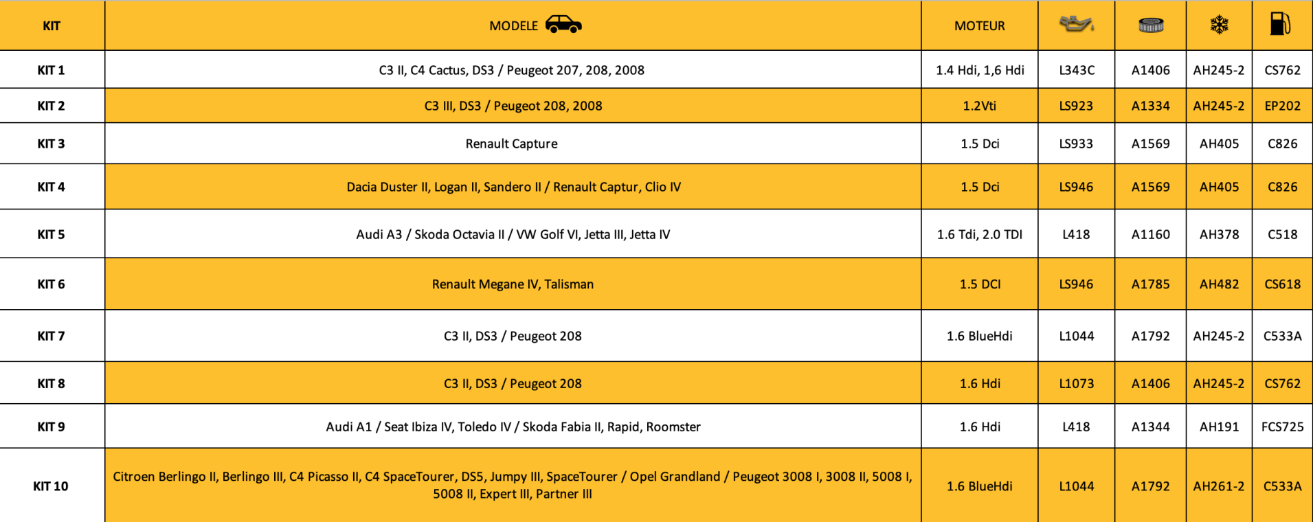 » inclut les 4 filtres : huile, carburant, air moteur et habitacle ainsi que le joint, la vis de vidange et l’étiquette d’entretien.